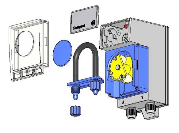 Mikroprozessorgesteuerte Druckdosierschlauchpumpe für die Zugabe von Glanztrocknern in gewerblichen Spülmaschinen • Förderleistung 80 - 600 ml/h • Inkl. Anschluss- und Montagematerial